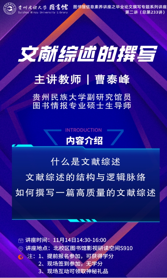 主 讲 人:曹泰峰 贵州民族大学副研究馆员