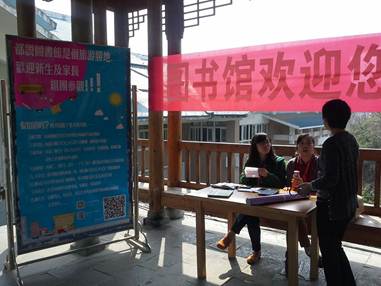 图书馆董家堰校区逸夫图书馆风雨桥迎新工作现场