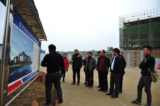 卢馆长一行在视察施工现场