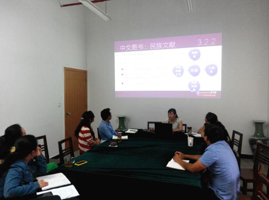 6月9日下午,文献资源建设部在A301研修室召开了“2015年馆配商业务指导培训” 暨业务工作交流会议。会议由文献资源建设部主任刘玲玲副研究馆员策划并组织,旨在通过业务学习和交流,全面提升文献资源建设工作的质量和水平。参加会议的有分管文献资源建设部的龚剑副馆长、文献资源建设部全体馆员,馆配商江苏新华和武汉三新公司的驻馆加工人员。本次工作会议,是首次针对馆配商正式开展的驻馆加工业务指导与交流活动。