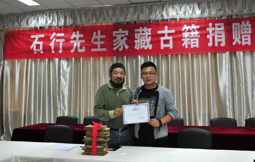 仪式上,石行先生说,在民大四年,收获很多,对母校有很深的感情。自己从小就喜欢古籍,对古籍有一种由衷的敬畏心理。此次捐赠的三十二册古籍,破损程度不一,捐赠给图书馆,一个方面是希望它的生命得到延续,另外也希望和母校的缘分一直续下去。