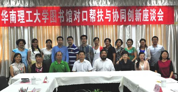 7月10日上午,华南理工大学图书馆党总支书记吴春年、副馆长蒋春林一行5人莅临我馆考察交流,并举行“对口帮扶与协同创新”交流座谈会。华南理工大学图书馆信息咨询部主任林中、技术部主任陶宇、编目部主任赖金秘随行。我馆党总支书记陈玉平、馆长卢云辉、副馆长龚剑和张卫、各部门负责人参加座谈。座谈会由陈玉平书记主持。会后,韦维副校长亲切会见了吴春年书记一行。