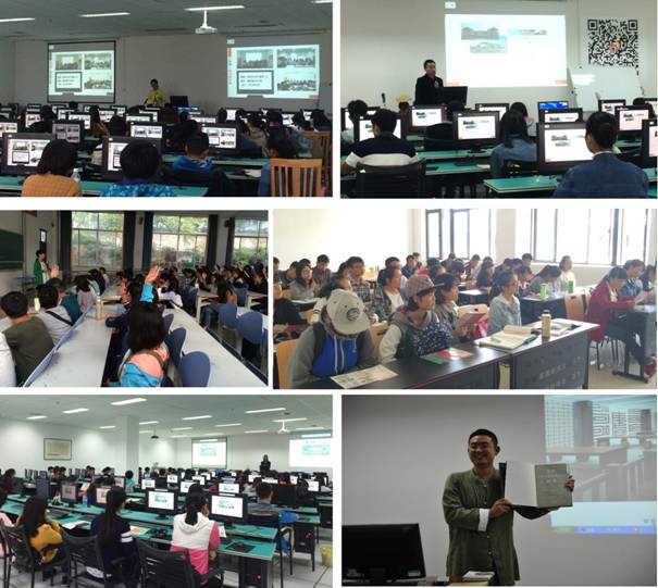 此次入馆教育针对十里河滩校区以及大学城校区共5000多名大一新生,采取学院与图书馆联合开展的方式,由学院安排班级的时间和地点,图书馆派馆员讲授的专题讲座形式。入馆教育旨在使新生了解图书馆的资源与基本服务,以便今后学习中有效地利用图书馆。入馆教育形式丰富,主要采取讲授及多媒体播放相结合的授课形式,生动有趣。主讲老师通过多媒体课件生动、直观的介绍了图书馆的概况、文献资源、服务项目及图书馆空间这几方面。丰富的图片资料课件的展示,教师详细的讲解,使新生们迅速对图书馆有一个整体认识。讲座期间为新生发放精美的《图书馆读者指南2015》,让新生更直观的了解图书馆的服务,更好的利用好图书馆资源。