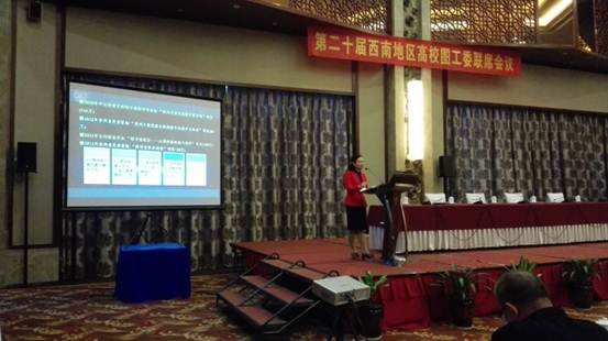 由云南省高校图工委主办的“第二十届西南地区高校图工委联席会议”于2015年11月16日至20日召开。来自西南三省一市(云、贵、川、渝)的高校图工委领导和高校图书馆同仁约260人出席或参加了会议。贵州民族大学图书馆副馆长龚剑(研究馆员)作了题为“开放共享,合作发展”的专题报告,得到与会专家很高的评价。贵州民族大学图书馆民族文化展示部主任黄元碧(副研究馆员)、数字图书馆部馆员陈世莉随行参加了会议。