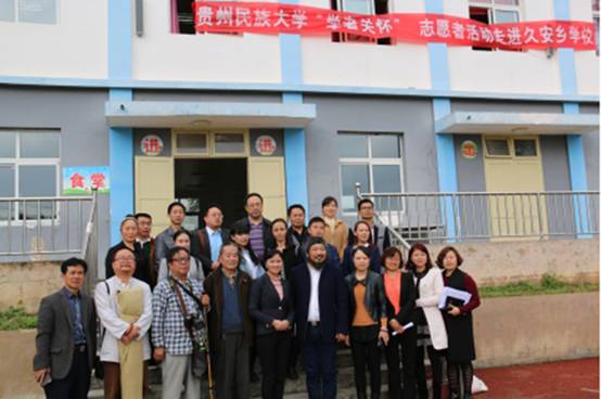 4月25日下午,在党委统战部关心支持下,由民盟贵州民族大学总支委员会倡导,图书馆积极配合,学者广泛参与的“学者关怀”志愿者行动乡村行在花溪区久安乡中心完小正式启动。花溪区教育局副局长罗维佳,久安乡党委赵蓉书记、人大主席罗孝伦,久安中心完小校长代传锦,贵州省古琴学会副会长洪波、贵州大学茶道社社长苏妍妍,贵州民族大学李华年教授、统战部部长刘汝才、统战部副部长刘笑玲、信息工程学院副院长张明生,图书馆总支书记吕映红、馆长卢云辉以及部分图书馆馆员、图书馆志愿者、民盟盟员、统战部工作人员、小学师生共80余人参加了启动仪式。刘汝才部长宣布活动正式启动。启动仪式由久安乡中心完小代传锦校长与卢云辉馆长共同主持。