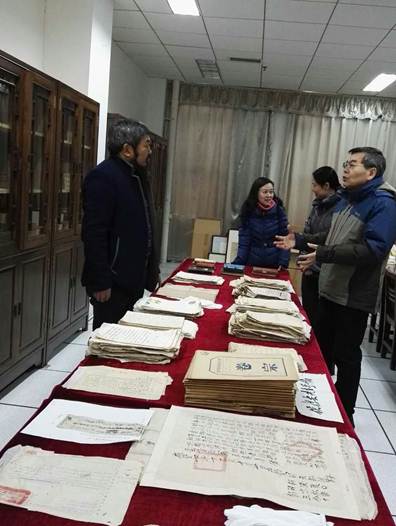 随后,朱强馆长一行到图书馆指导工作,参观了民族文化展示厅、古籍书库及修复室、地方文献资料室等,对我校图书馆特色办馆的发展道路给予了高度评价。