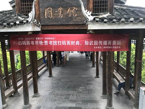 2018年4月23日全天,由贵州民族大学图书馆文献资源建设中心主办的第四届“校园读书月”暨第23个“世界读书日”之扫码荐书活动:“荐书因扫码而时尚,知识因传播而美丽”活动,在图书馆风雨桥取得圆满成功。本次活动有来自各专业的本科生、研究生、留学生和各学院老师共同参与,共计200余人。