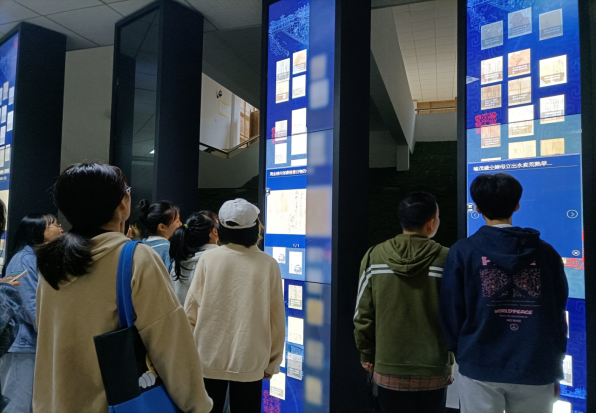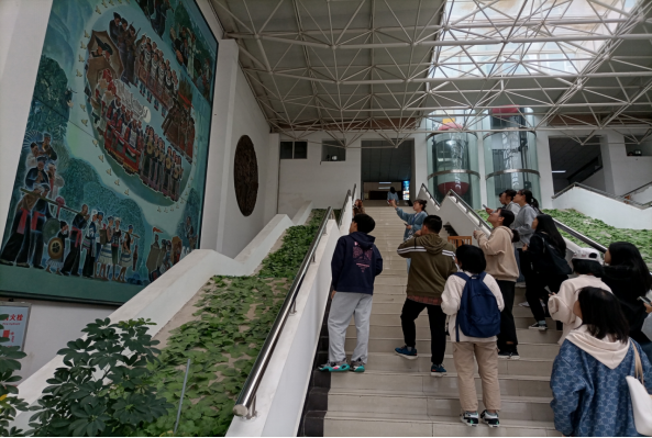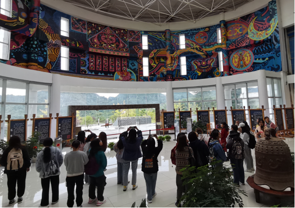 2021年10月15日下午,贵州民族大学图书馆举办的以“遇见图书馆”为主题的迎新参观活动圆满结束。此次活动面向2021级新生开放,受到新生的热烈欢迎,共110人参与,分别是10月14 日--15日下午,各两场,共4场。参观活动由图书馆志愿者团队组织,参观路线主要包括图书馆一楼大厅艺术作品群、三楼“民族文化传承”互动体验空间、影视文化欣赏空间观等。
