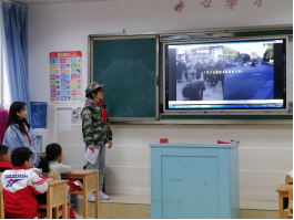 活动伊始,主持人首先给同学们展示新中国成立前后的照片,在对比中引出故事主题,以一种崭新的视角讲述《闪闪的红星》的故事。