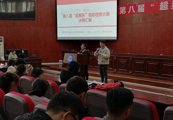 11月26日下午,由贵州民族大学图书馆主办、超星集团贵州分公司协办的贵州民族大学第八届“超星杯”信息检索大赛决赛在法学院模拟法庭拉开帷幕。贵州民族大学图书馆参考咨询部主任安振翼、超星集团贵州分公司经理吴姣出席决赛现场并担任评委。贵州民族大学图书馆文献资源与建设中心负责人李莉、新馆建设办公室负责人程亚飞、参考咨询部馆员李兰、参考咨询部馆员丁文姚、超星集团贵州分公司陈念担任评委。贵州民族大学图书馆学专业19级学生冉梦香、18级图书馆学专业学生王磊主持。