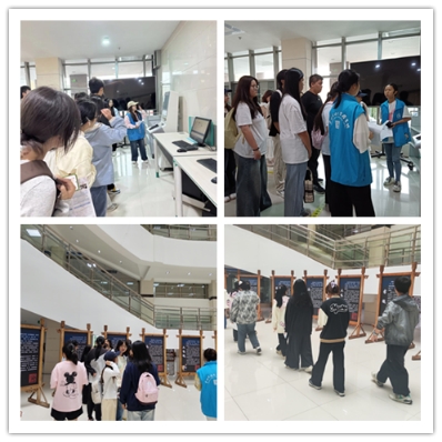 此外,讲解员带领大家参观了图书馆文化推广活动海报展览,并鼓励同学们积极参加图书馆举办的各类文化活动。