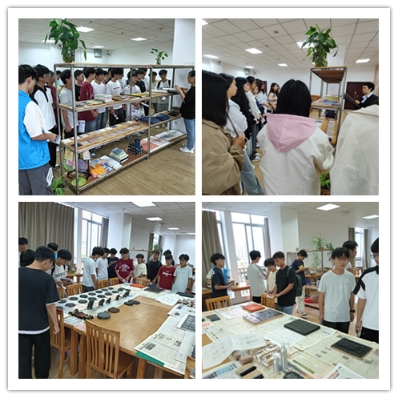 在二楼,新生们聆听了古籍修复中心老师介绍的古籍装帧以及印刷拓片方法;参观了馆藏水书拓片和书画盒、线装书等手工文创作品。同学们叹为观止,备受触动。