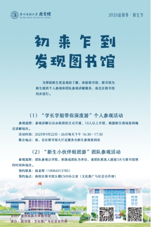 金秋九月,丹桂飘香,为帮助2025级新生更直观了解、体验图书馆,9月22日起,贵州民族大学图书馆为新生提供个人参观和团队参观讲解服务。本次活动是“2025迎新季·新生节”系列活动之一。截止目前,已有来自预科教育学院、民族学与历史学学院、物理与机电工程学院、数据科学与信息工程学院等南北校区各学院的近800名新生参与该活动。活动由文化推广与社会合作部带领图书馆志愿者团队具体实施。