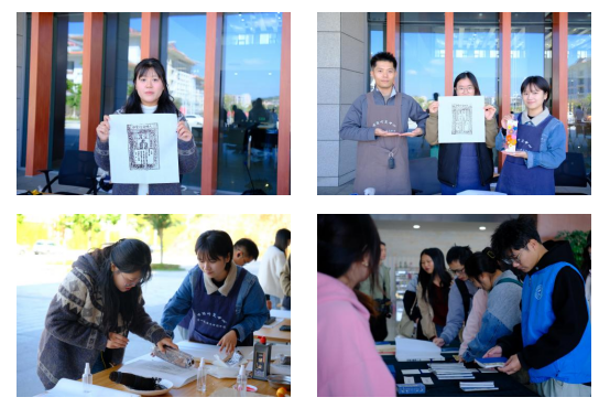 雕版印刷、传拓技艺体验区同样人气高涨,师生亲手操作工具、学习传统工艺,感受古籍保护与修护的匠心。
