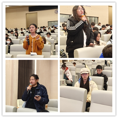 互动环节中,同学们围绕读书如何平衡广度与深度、如何面对权威信息、传统文化入门书籍推荐、历史阅读方法以及阳明心学在个人选择中的指导作用等问题踊跃提问。栾老师结合“心即理”“致良知”“知行合一”等心学核心,建议建立分层次阅读体系、培养“理解—判断—表达”的独立思考能力,并强调在人生选择中应“倾听内心、果断行动、事上验证”,减少内耗,坚定前行。