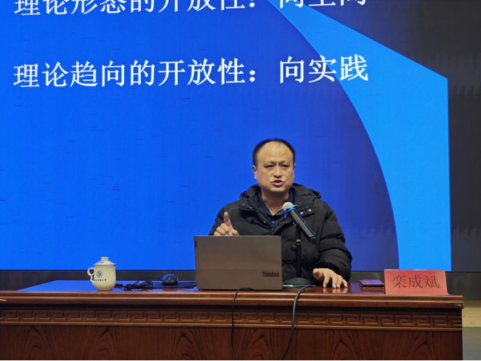 讲座伊始,栾成斌副教授以“从自律到应变——时代对能力的叩问”为引,剖析了知识存量与实践能力间的差距,指出唯有真正融入环境,才能有效开展工作,并表示青年须立志、修德、锻铸抗挫力。