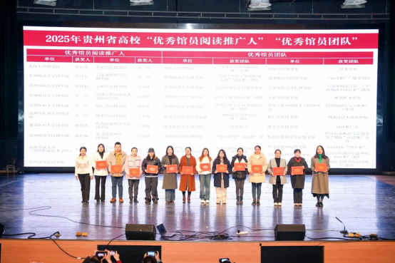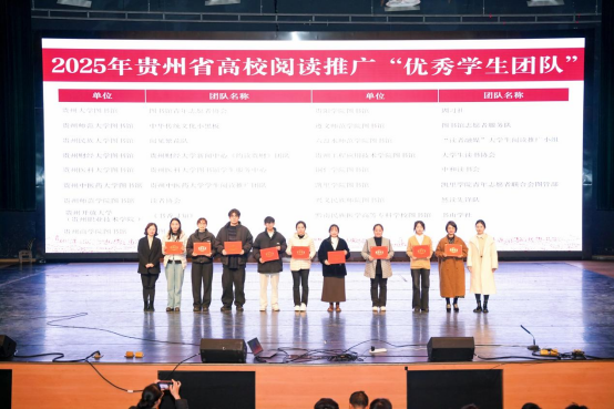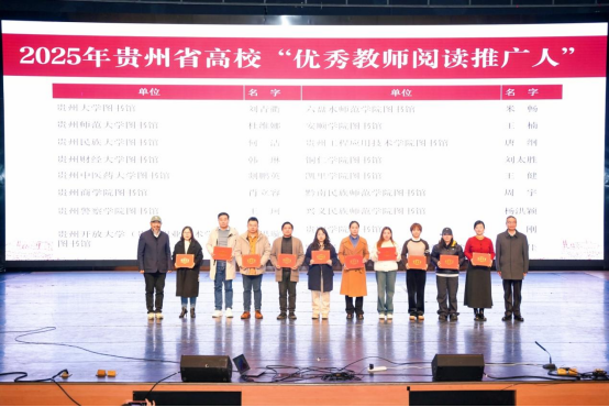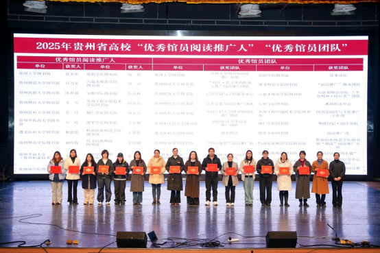会上还举行了2025年贵州省高校图书馆阅读推广表彰仪式,现场对“优秀读者”“优秀学生阅读推广团队”“优秀教师阅读推广人”等五类先进个人与集体进行表彰,树立书香校园建设榜样。