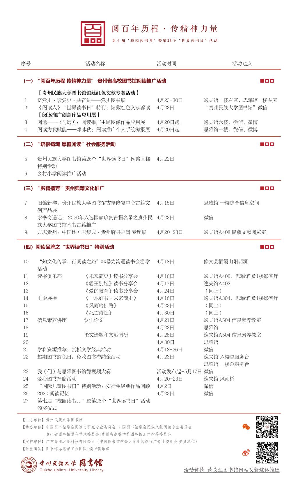 第七届“校园读书月”暨第26个“世界读书日”活动一览表