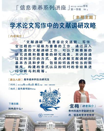 主 讲 人:金梅,贵州民族大学副研究馆员,信息检索课程教师