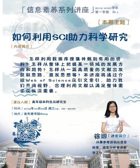 主 讲 人:徐嫄,从事参考咨询及信息检索、信息分析等课教学工作。
